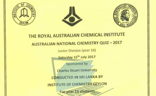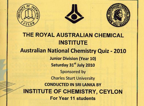 This is the 35th year of the quiz and this year s australian national chemistry quiz will be held on tuesday 23rd august 2016 at 9 00 am. While some questions will rely on knowledge and understanding covered as part of studying the australian curriculum we have endeavoured to make the quiz interesting and to promote chemistry and chemical thinking. A helium b hydrogen c air d neutrons question 2 2. This quiz conducted in sri lanka is a unique chemical education activity designed to promote chemistry among younger generation.