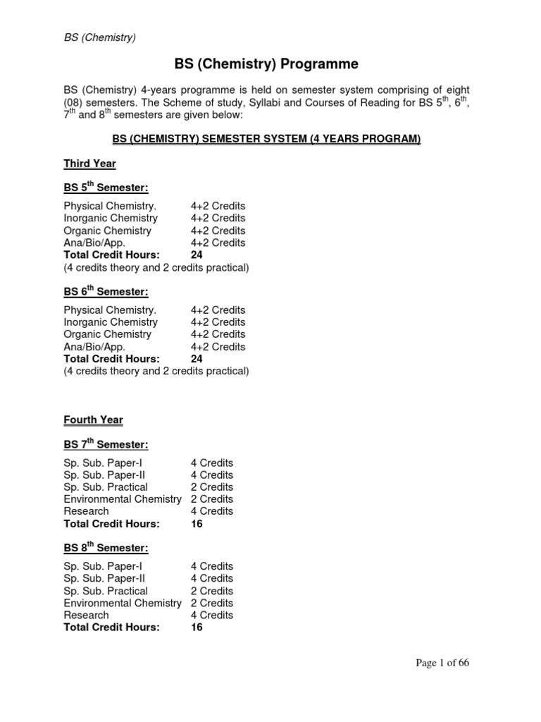 B S Chemistry Curriculum