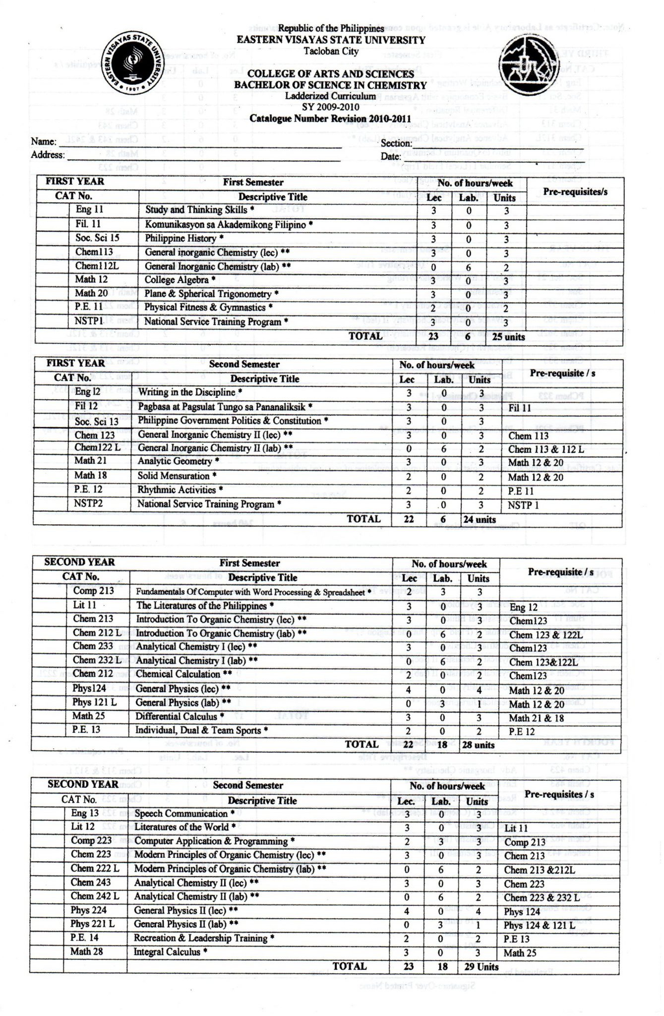 Bachelor Of Science In Chemistry Bschem