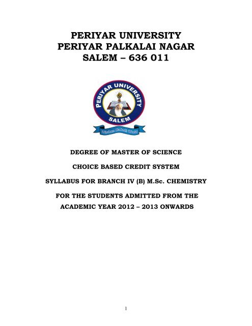 B sc chemistry syllabus periyar university. Periyar university offers graduate postgraduate research and some of the certificate courses in the areas of science and technology. Hope you may get complete details of periyar university courses and syllabus 2020 courses list duration course wise syllabus chapters topics syllabus download syllabus pdf how to download syllabus pdf contact details. Along with being a most prestigious university it is also affiliated with ugc and naac. Chemistry for the students admitted from the academic year 2017 2018 onwards.