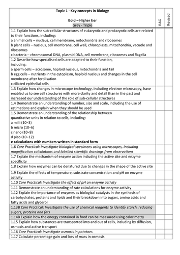 Edexcel 9 1 Biology Specification Tick Sheets Teaching Resources