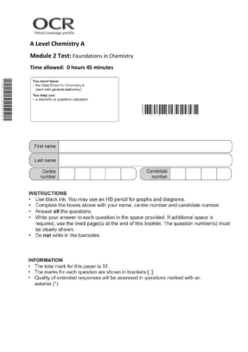 Ocr A Level Module 2 Foundations In Chemistry Topic Test Teaching Resources