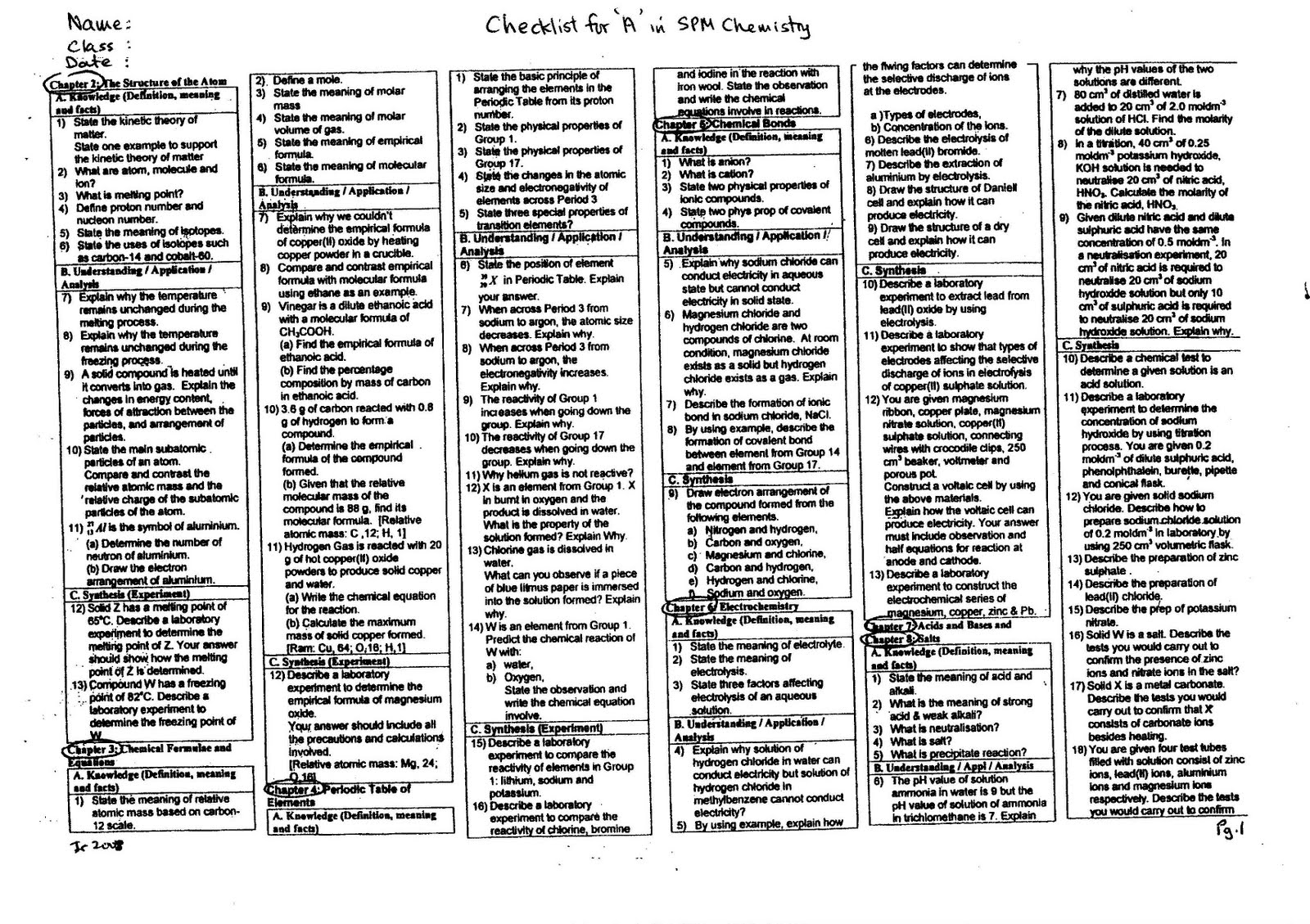 Igcse Chemistry Revision Checklist Ionic Bonding Chemical Reactions