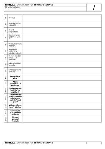 Edexcel 9 1 Chemistry Formulas And Mini Test For Separate Triple Science Teaching Resources