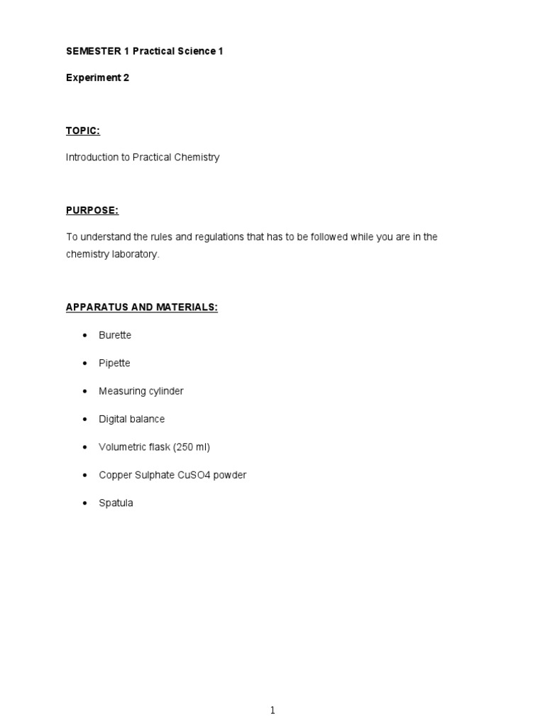 Report Introduction To Practical Chemistry Personal Protective Equipment Physical Sciences