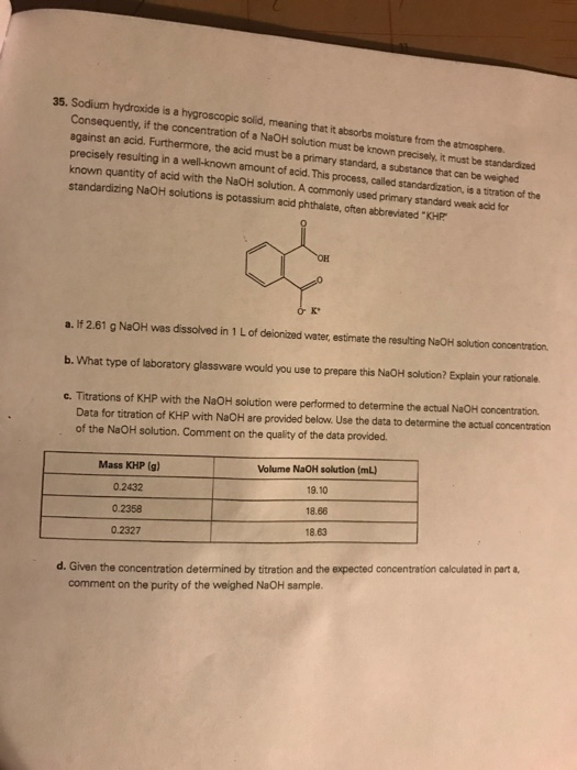 Solved Sodium Hydroxide Is A Hygroscopic Solid Meaning T Chegg Com