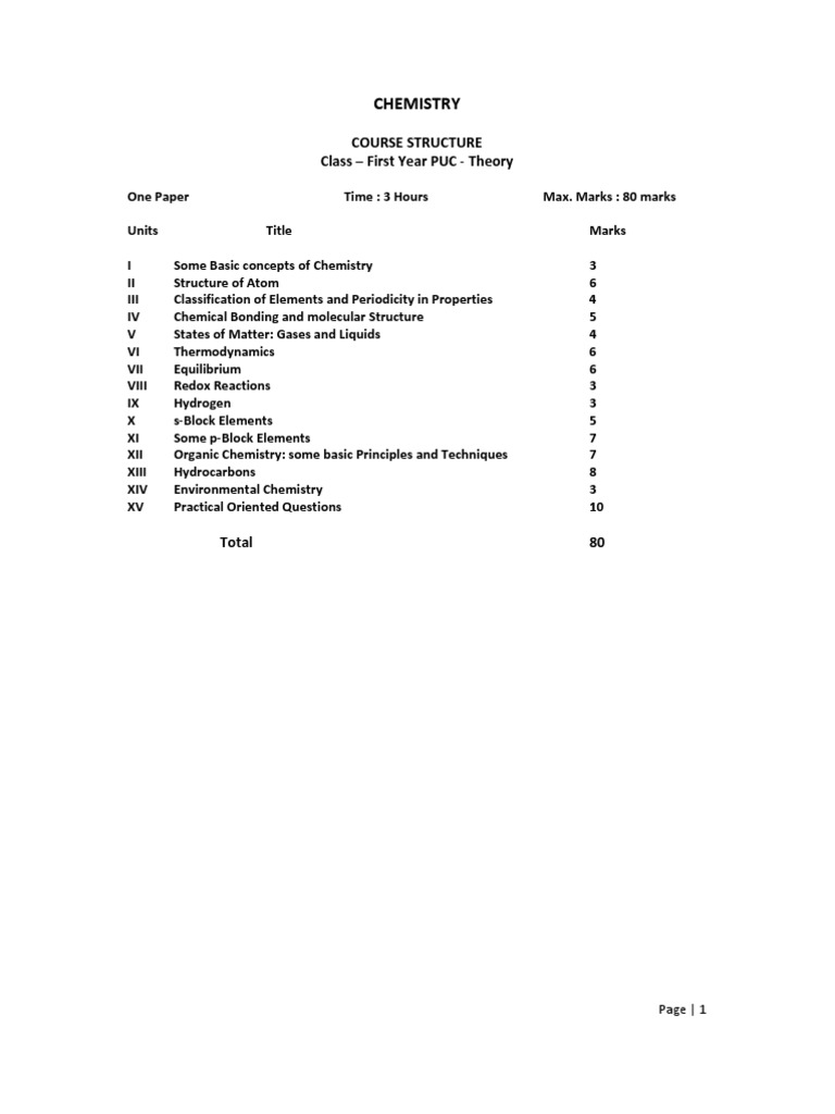 Kar 1st 2nd Puc Syllabus 2020 Download All Subject Question Paper Chemistry Paper Model Question Paper