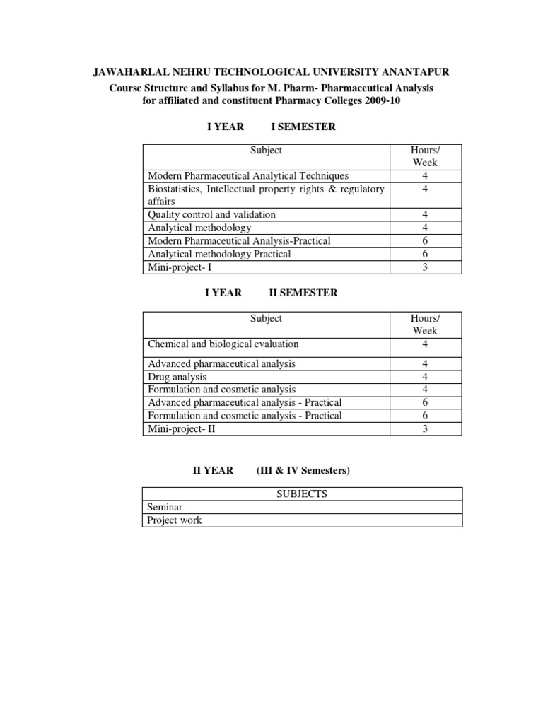 Jntua M Pharmacy Syllabus Books Course Structure