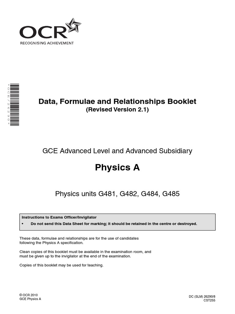 Spice Of Lyfe Ocr A Level Physics Data Sheet 2017