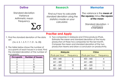 Standard Deviation Homework Teaching Resources