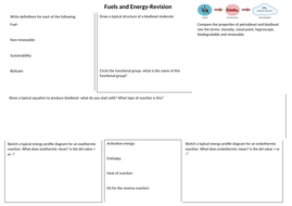 Vce Chemistry Unit 3 And 4 Fuels And Energy Revision Teaching Resources